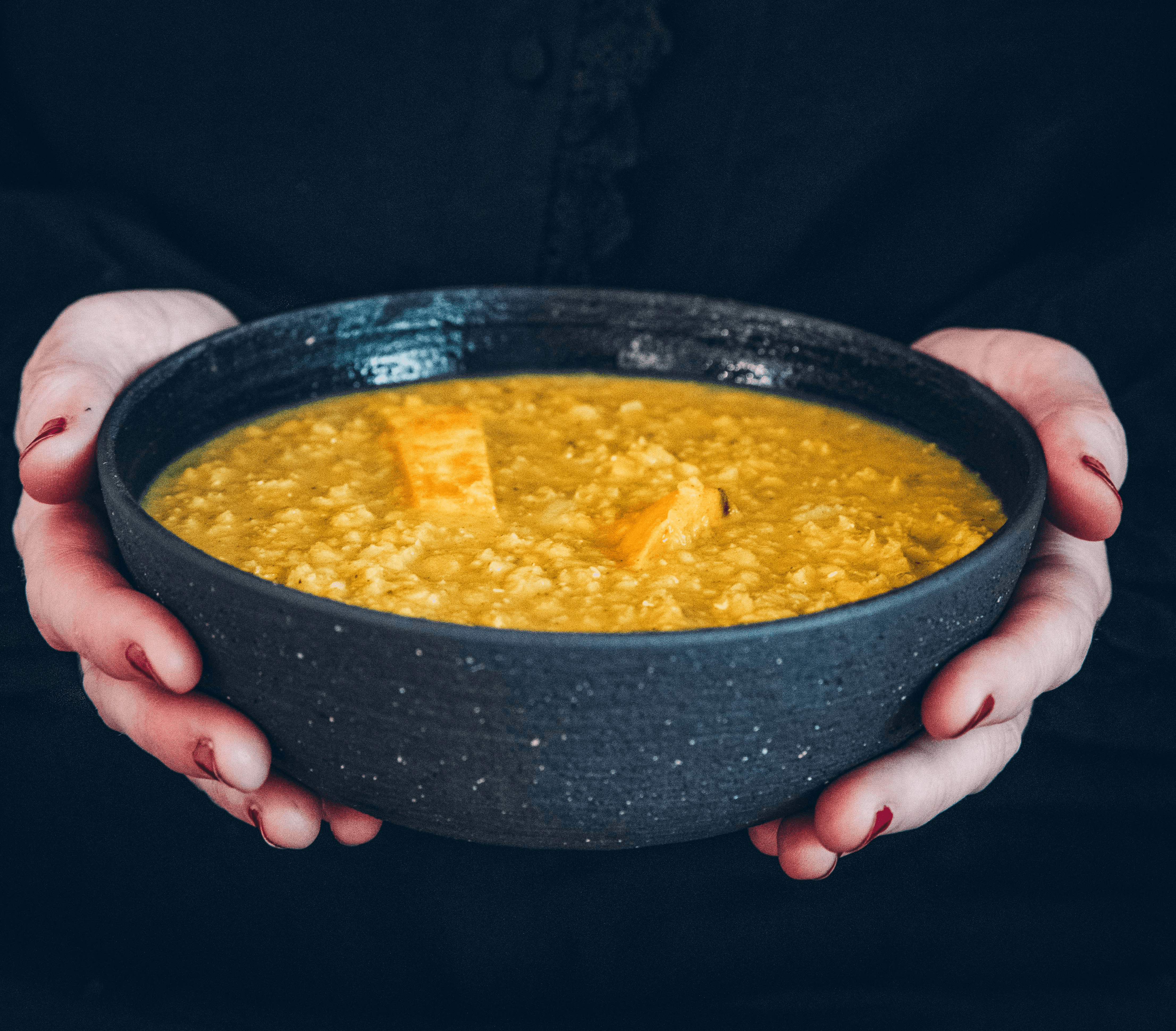 Berið súpuna fram og setjið grænmetið út á.